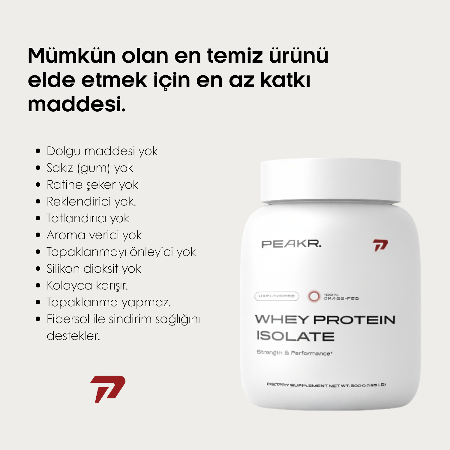 Peakr Whey Isolate, optimal performans, toparlanma ve günlük kas bakımı için tasarlanmış yüksek kaliteli, çim beslemeli whey proteinidir.