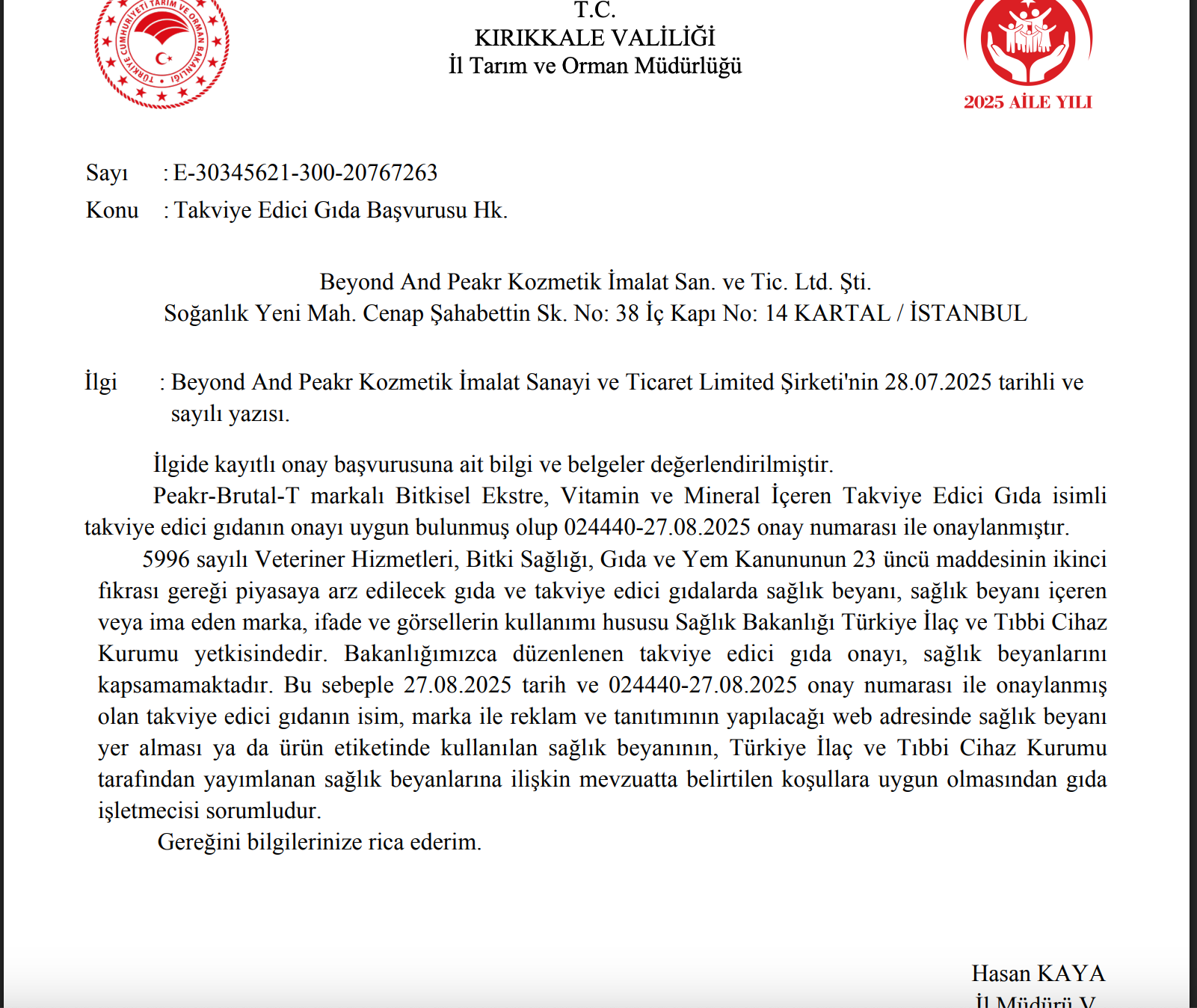 Tarım Bakanlığı Onay No: 024440-27.08.2025