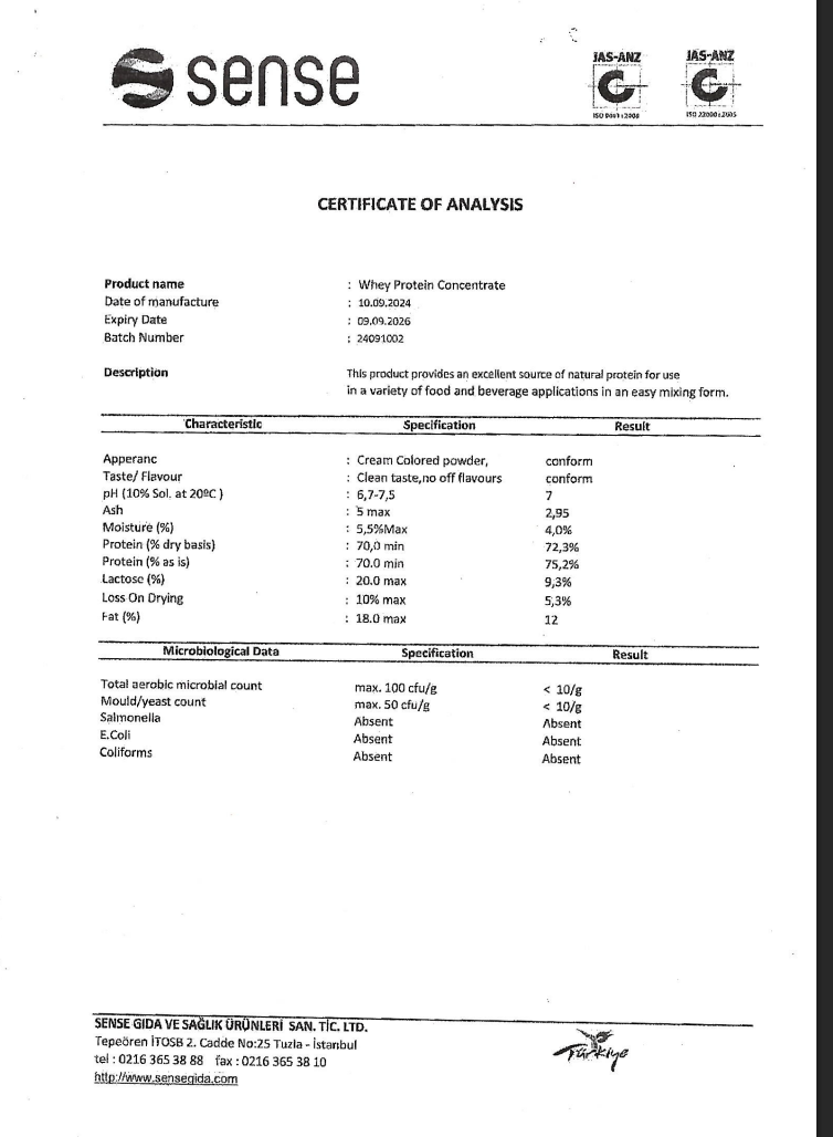 - Whey protein konsantresi (saf protein kaynağı)